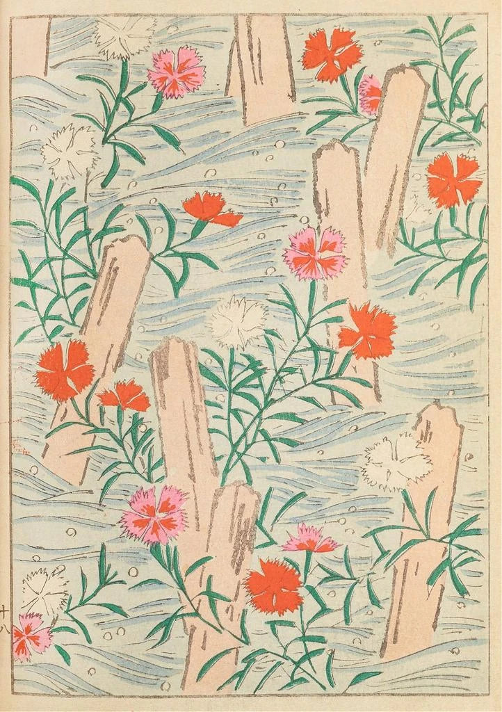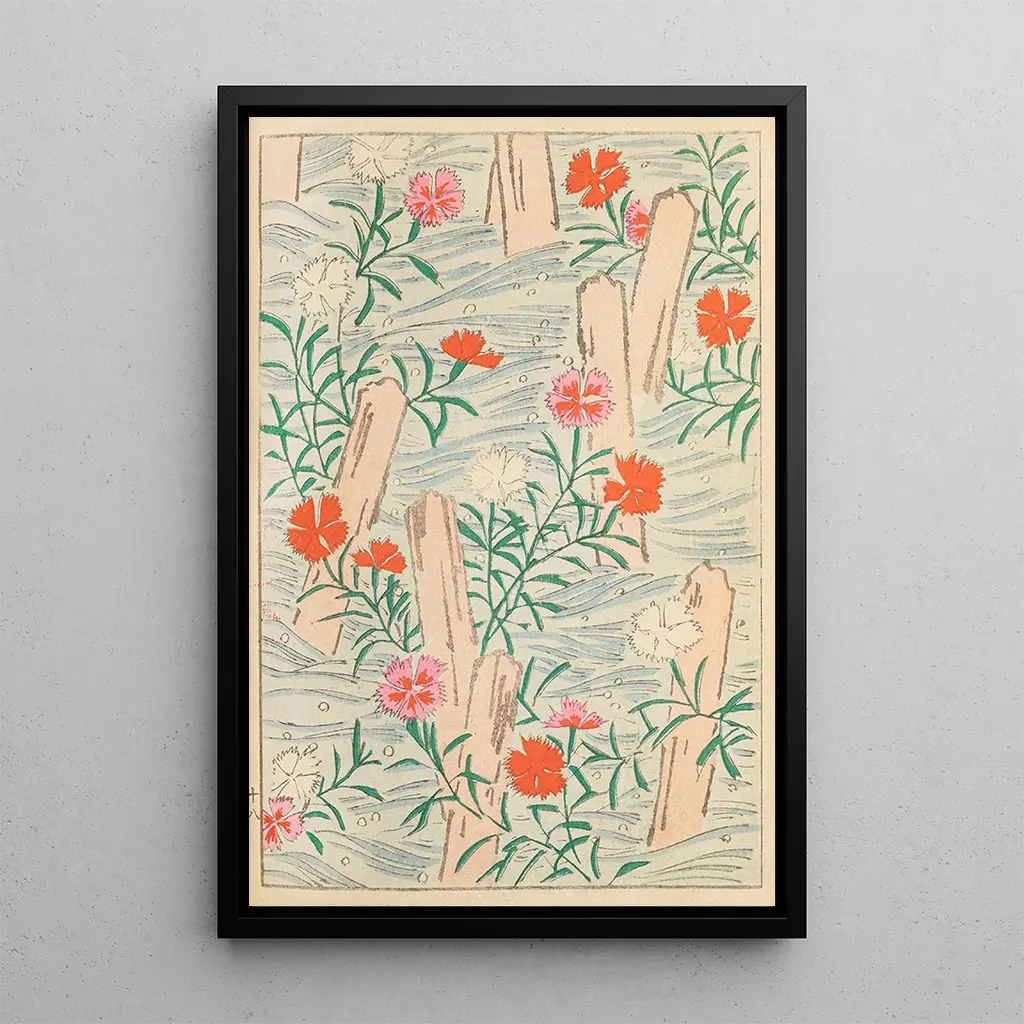The art print of Bijutsukai Pl59 depicts a delicate scene where nature expresses itself in all its splendor. The floral motifs, carefully arranged, capture the essence of the seasons with a palette of soft and soothing colors. The technique of the print allows for each detail to be rendered with remarkable precision, creating an atmosphere of calm and serenity. The shades of green and pink blend harmoniously, inviting the viewer to a peaceful contemplation. This artwork is a true invitation to escape into a world where natural beauty reigns supreme.