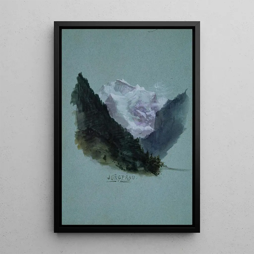 The art print of Jungfrau transports us to the heart of the Swiss Alps, where the eponymous mountain rises with striking grandeur. John Singer Sargent, master of portraiture and light, uses a palette of soft colors, blending shades of blue and white to capture the purity of the snow and the depth of the sky. The watercolor technique, light and fluid, gives the artwork an almost ethereal atmosphere, inviting the viewer to immerse themselves in this majestic landscape. The composition, balanced and harmonious, evokes a sense of serenity, as if time had stopped in the face of this natural beauty.