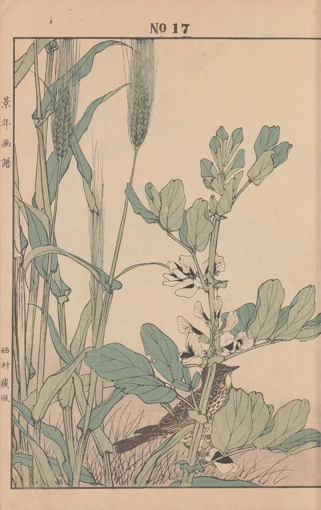 Keinen kach gafu Pl063 art print takes us into a vibrant world of colors and floral details. This piece, created with a refined printmaking technique, highlights the richness of Japanese flora through delicate and harmonious motifs. The subtle shades of green, pink, and yellow blend to create an atmosphere that is both lively and soothing. Every element of the composition is carefully arranged, inviting the viewer to explore the beauty of nature while absorbing the serenity it exudes.