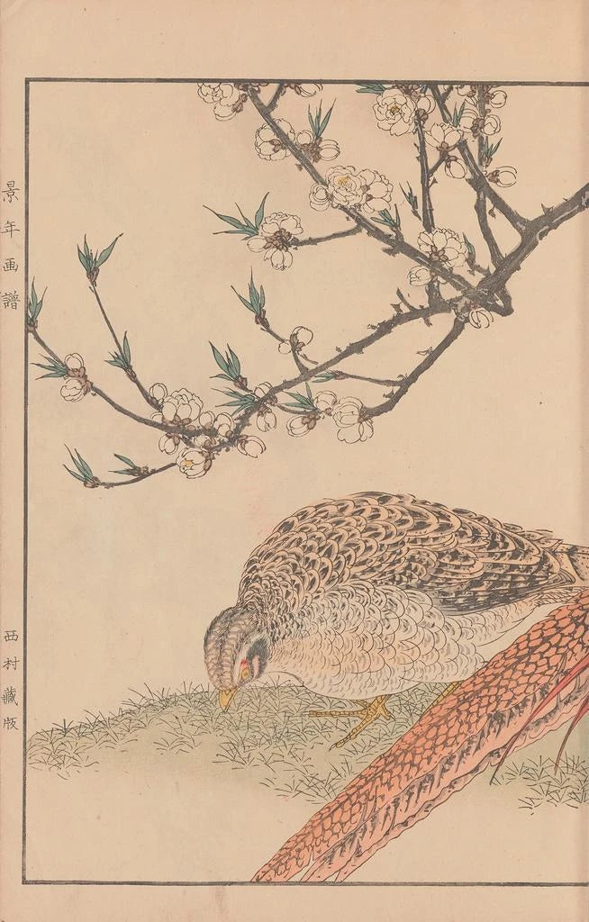 The art print Keinen kach gafu Pl079 immerses us in a universe where nature is highlighted with unparalleled delicacy. The pastel colors intertwine harmoniously, evoking the serenity of Japanese landscapes. The technique of ukiyo-e printmaking, characteristic of traditional Japanese art, is expressed here through flowing lines and meticulous details. Each element, whether delicate flowers or graceful birds, seems to vibrate with its own life, creating a soothing and contemplative atmosphere. This artwork invites a sensory escape, where one can almost hear the whisper of the wind through the branches.