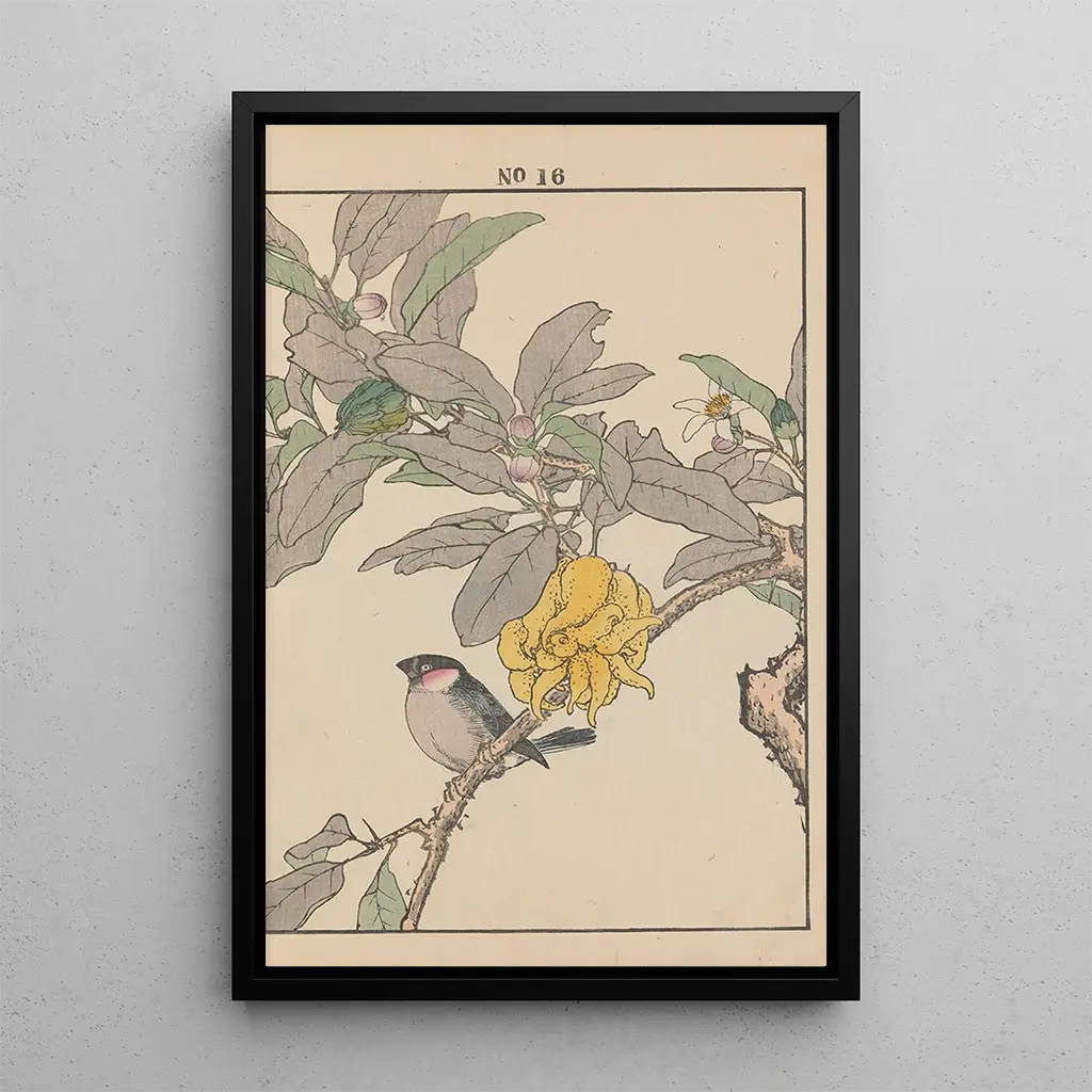 Keinen kach gafu Pl102 art print immerses us in a floral universe where each petal seems to vibrate under the light. The vibrant colors, ranging from deep reds to bright yellows, create a captivating visual harmony. The technique of the Japanese woodblock print, with its meticulous details, brings this composition to life, evoking a sense of lightness and serenity. The atmosphere emanating from this artwork invites contemplation, as if each flower tells an ancient story, a connection between nature and art. Imao Keinen: a master of the Japanese woodblock print Imao Keinen, active at the end of the 19th century, is recognized as one of the great masters of the Japanese woodblock print. Influenced by the ukiyo-e tradition, he managed to incorporate modern elements while preserving the essence of his art. His period of creation coincides with a time of transition in Japan, where traditional art blends with Western influences. Keinen captured the ephemeral beauty of nature, making his works valuable testimonies of Japanese culture. His legacy endures, inspiring many contemporary artists. A decorative art print with multiple assets This reproduction of the painting Keinen kach gafu Pl102 is an ideal choice to enhance your interior. Whether in a living room, office, or bedroom, it adds a touch of elegance and serenity. The quality of the print guarantees fidelity to the colors and details of the original artwork, making each viewing a moment of aesthetic pleasure. By adding this art print to your decor, you create a space where art and nature meet, offering a calming and inspiring atmosphere.