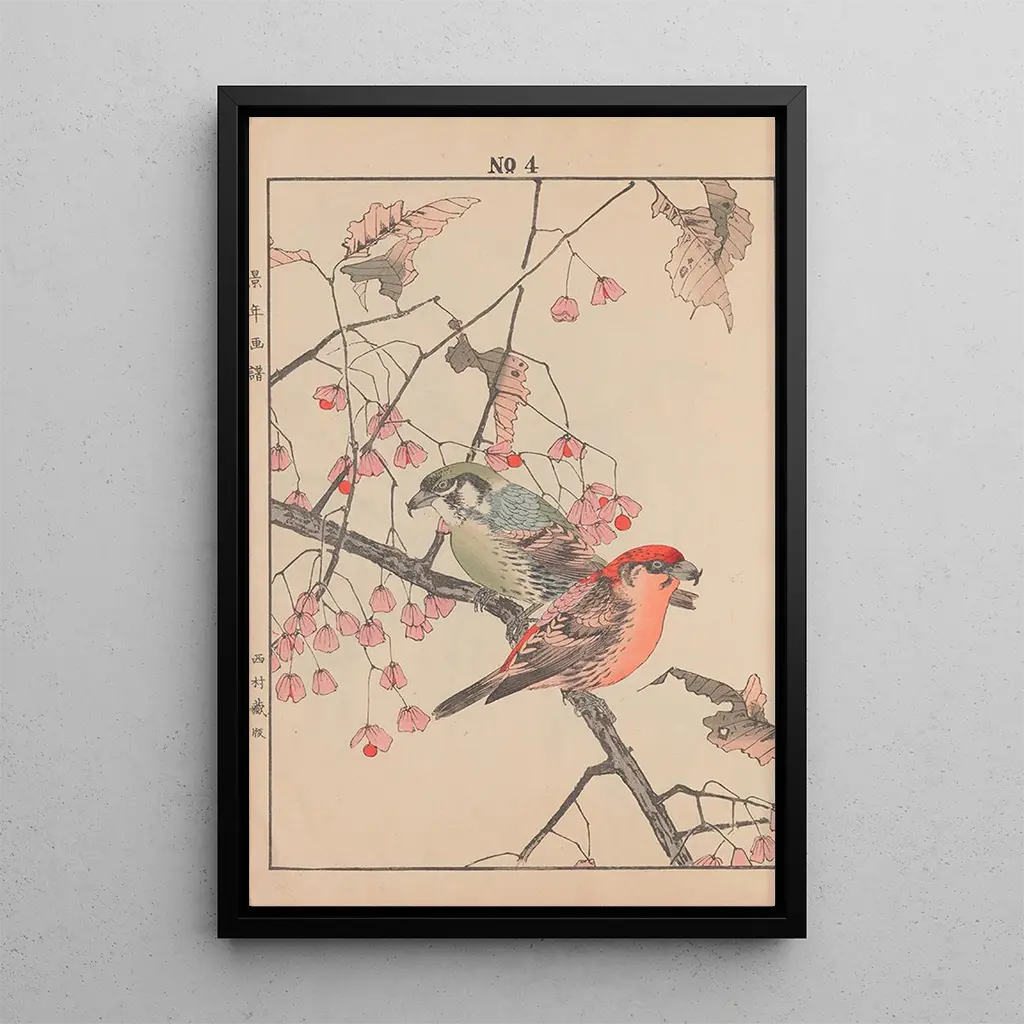 Keinen kach gafu Pl127 : an ode to Japanese nature The art print of Keinen kach gafu Pl127 immerses us in a delicate floral universe, where each petal seems to vibrate under the effect of soft light. The pastel colors, blending shades of pink, green, and blue, create a calming and contemplative atmosphere. The technique of ukiyo-e print on paper, typical of Japanese art, reveals incredible meticulousness in the detail of flowers and leaves. This artwork evokes deep serenity, inviting the viewer to a meditative pause, as if each element of the composition breathes with them. Imao Keinen : a master of Japanese printmaking Imao Keinen, active during the Meiji period, is recognized for his mastery of ukiyo-e print techniques. Influenced by the surrounding nature and the artistic traditions of his time, he managed to combine modernity with respect for classical motifs. His works, often centered on flora and fauna, testify to a keen sensitivity to the beauty of the natural world. As an artist of the late 19th century, Keinen played a key role in preserving and disseminating Japanese art at a time when the country was opening up to the West, thus marking a turning point in the history of Japanese art. A decorative acquisition with multiple assets The art print of Keinen kach gafu Pl127 is an ideal choice to enhance your interior decor, whether in a living room, office, or bedroom. Its faithful print quality and aesthetic appeal make it a captivating artwork that draws the eye and inspires admiration. By integrating this canvas into your space, you bring a touch of elegance and serenity, while celebrating Japanese artistic heritage. Every glance at this piece will remind you of the ephemeral beauty of nature, transforming your interior into a haven of peace.