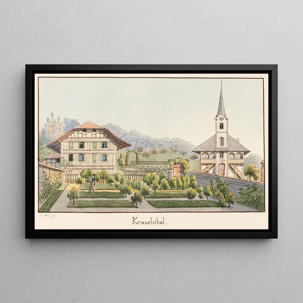 The art print of Krauchthal is an ideal choice to enhance your interior, whether in a living room, office, or bedroom. Its printing quality guarantees remarkable fidelity to the colors and details of the original work, offering undeniable aesthetic appeal. Hung on the wall, this canvas brings a touch of serenity and nature to your space, while sparking conversations about art and the beauty of landscapes. By incorporating this art print into your decor, you choose a piece that combines elegance and history, enriching your environment in a meaningful way.