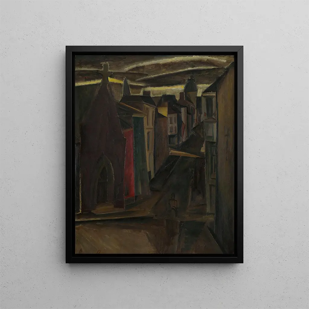 La Langestraat à Ostende, an iconic art print by Constant Permeke, powerfully evokes the raw beauty of everyday life in Ostende, a Belgian port rich in history. In this artwork, the artist captures the very essence of the city through a vibrant palette of colors and expressive forms. The scene depicts a lively street where passersby and buildings intertwine, inviting the viewer to immerse themselves in the warm atmosphere of this seaside resort. This piece does more than depict a location; it tells a story, a moment frozen in time, where the ordinary becomes extraordinary.