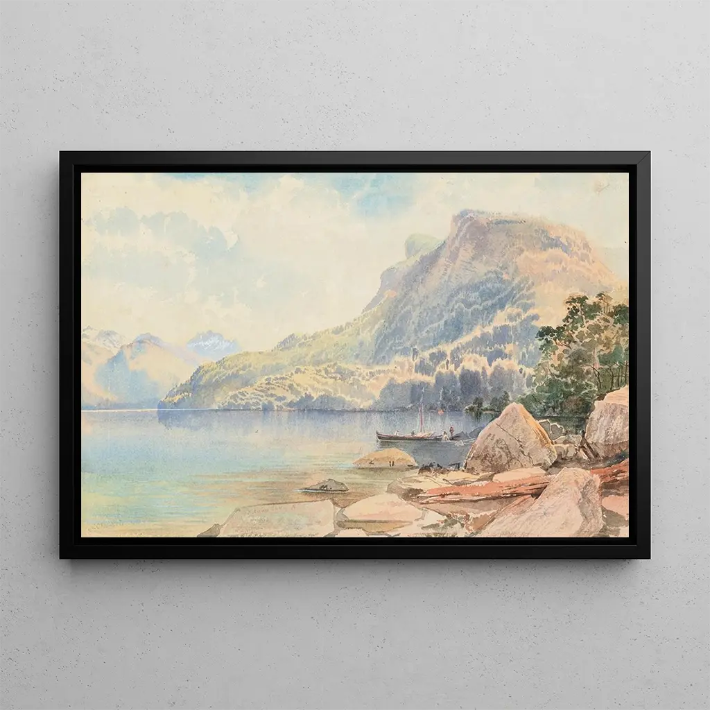 Nicholas Chevalier transports us to the heart of New Zealand landscapes with his depiction of Lake Te Anau. This canvas, imbued with calmness, reveals shades of blue and green that blend harmoniously, evoking the tranquility of the waters. Chevalier's technique, which combines precision and impressionism, allows us to feel the peaceful atmosphere of this enchanting place. The meticulous details of the mountains in the background and the softness of the light create an invitation to contemplation, where every glance at this art print of Lake Te Anau becomes an escape into nature.