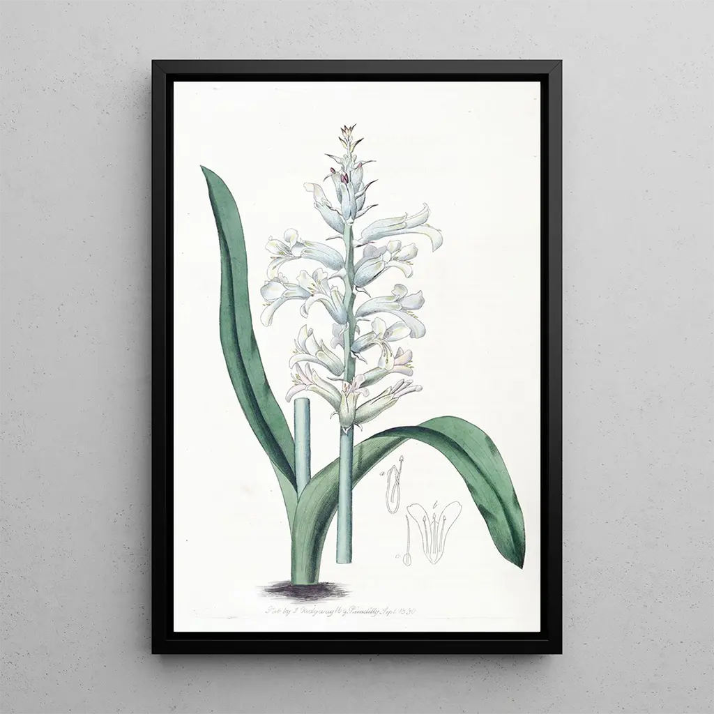 Pale Blue Flower Lachenalia: A Floral Delicacy The art print of the piece "Lachenalia à fleurs bleu pâle" by Sydenham Edwards transports us to a lush garden where the softness of colors blends with the finesse of shapes. The shades of delicate blue, combined with touches of green, create a visual harmony that evokes serenity. The watercolor technique, mastered by Edwards, captures the transparency and lightness of the petals, bringing this fascinating plant to life. Every detail is carefully rendered, inviting the viewer to appreciate the subtle beauty of nature. Sydenham Edwards: An Artist Dedicated to Botany Sydenham Edwards, a botanical illustrator of the early 19th century, played a crucial role in documenting plant species. His works, often published in specialized books, reflect his love for nature and his desire to share its beauty with the world. Raised in a context where science and art converged, Edwards knew how to marry scientific precision with artistic sensitivity. His art print of "Lachenalia à fleurs bleu pâle" is a perfect example of his unique style, which continues to inspire botany and art enthusiasts. A Decorative Acquisition with Multiple Benefits The art print of "Lachenalia à fleurs bleu pâle" is a decorative choice that will add a touch of freshness to your interior. Whether in a living room, office, or bedroom, this canvas will captivate with its elegance and charm. The quality of the reproduction guarantees fidelity to the colors and details of the original artwork, allowing you to fully enjoy its beauty. By incorporating this piece into your decor, you create a calming and inspiring space, ideal for relaxation and contemplation.