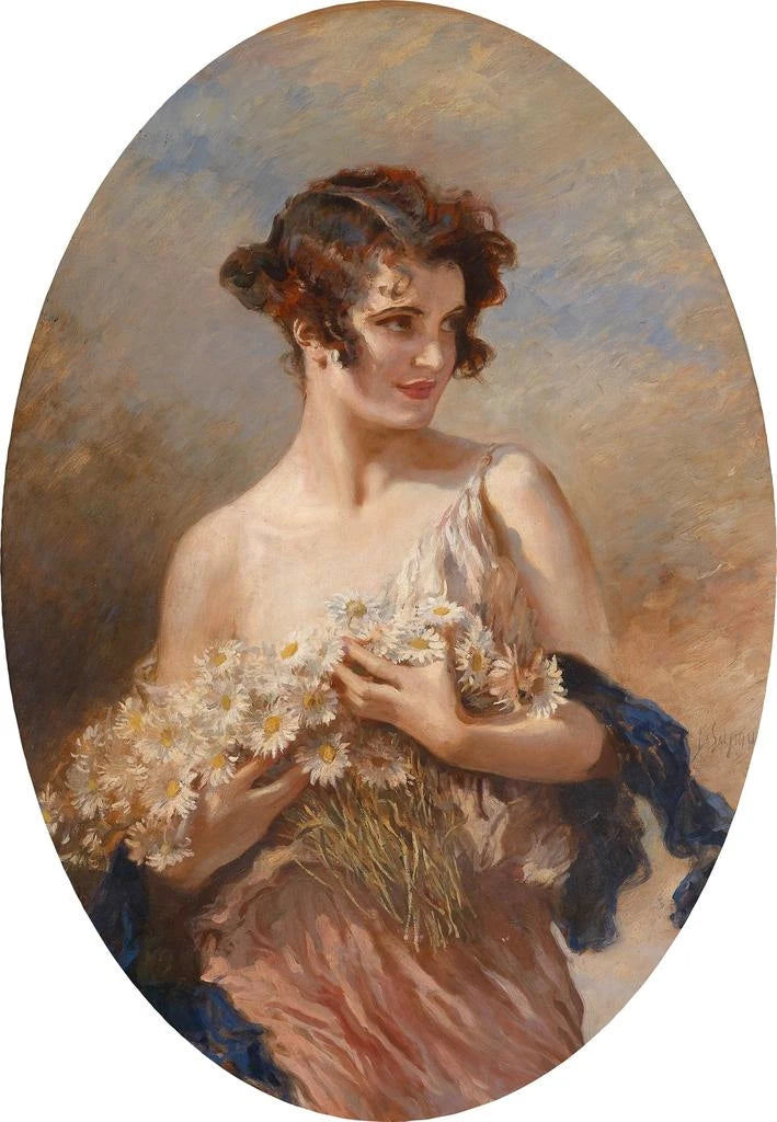 Art print | Dame avec un bouquet de marguerites - Leopold Schmutzler