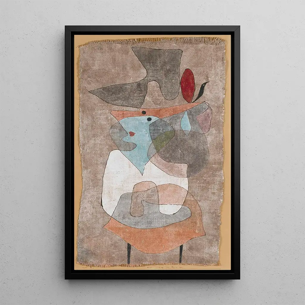 In the art print of the work "Dame au Chapeau et Petite Table," Paul Klee immerses us in a universe where colors intertwine with poetry. The vibrant shades of red, blue, and yellow create a warm and playful atmosphere, while the geometric shapes evoke a certain abstraction. The composition, both simple and complex, draws the eye and invites attentive contemplation. Each element seems to tell a story, and the lady with the hat, with her enigmatic expression, becomes the focal point of a scene filled with mystery and charm.