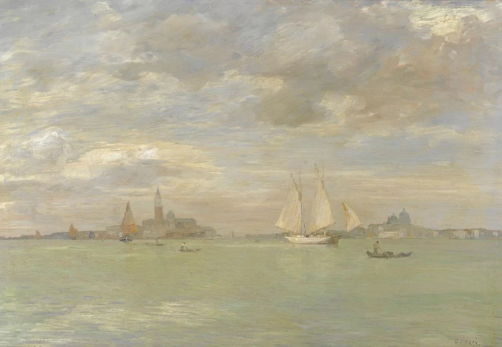 Guglielmo Ciardi, born in 1842, was an Italian painter whose work is part of the impressionist movement. Trained at the Academy of Fine Arts in Venice, he was influenced by Venetian landscapes and Mediterranean light. His career spanned the late 19th century, a period when Venice experienced an artistic revival. Ciardi was able to capture the essence of his hometown, blending tradition and modernity. His works are highly valued today for their ability to evoke deep emotions and their timeless beauty.