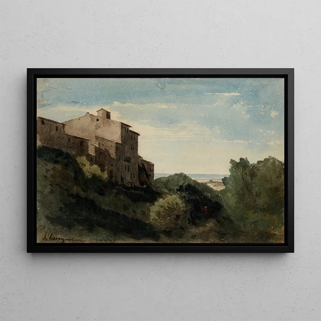 Paysage à Ariccia: an harmony between nature and serenity In this artwork, Henri-Joseph Harpignies transports us to the heart of a bucolic landscape where light plays with shades of green and blue. The majestic trees stand proudly, while the sky, in a bright blue, is reflected in the calm waters of a stream. The oil painting technique, skillfully mastered, creates a peaceful and contemplative atmosphere. Each brushstroke seems to capture the very essence of nature, inviting the viewer to immerse themselves in this living painting. The balanced composition, with its gentle lines and organic shapes, evokes a sense of tranquility and timeless beauty. Henri-Joseph Harpignies: a master of impressionist landscapes Harpignies, active in the 19th century, is often associated with the impressionist movement, although he developed a style unique to himself. Influenced by the great masters of his time, he was able to capture light and colors in a distinctive way, focusing on the beauty of French landscapes. His career, marked by numerous exhibitions and growing recognition, testifies to the importance of his work in art history. Harpignies was also a pioneer in using color to evoke emotions, an aspect fully reflected in the art print of "Paysage à Ariccia." A decorative piece with multiple assets The art print of "Paysage à Ariccia" is an ideal choice to enhance your interior, whether in a living room, office, or bedroom. Its soothing color palette and serene atmosphere make it a centerpiece that draws the eye and invites dreaming. The quality of the art print guarantees remarkable fidelity to the details of the original work, allowing you to appreciate the full richness of the composition. With its undeniable aesthetic appeal, this canvas will bring a touch of elegance and nature to your decor, while evoking the beauty of French landscapes.