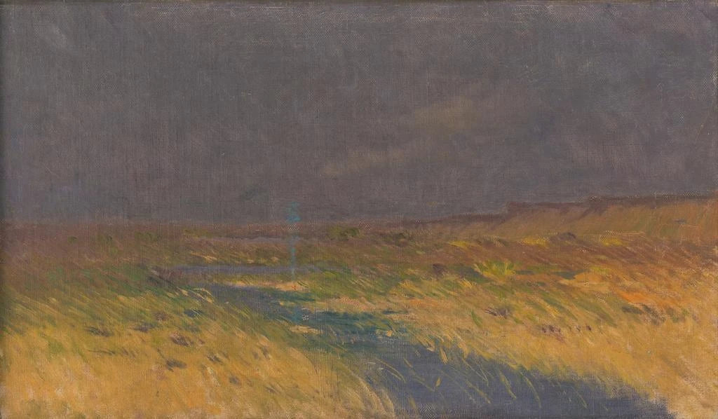Paysage avant le soir, a work by Ferdinand Katona, immerses us in a magical atmosphere where day slowly gives way to night. The warm, golden colors of the twilight blend with emerging shadows, creating a lively and poetic tableau. Katona's technique, characterized by fluid and expressive brushstrokes, brings this landscape to life, where each element seems to vibrate under the fading light. This art print evokes a sense of calm and melancholy, inviting a contemplative pause in the face of the ephemeral beauty of the moment.