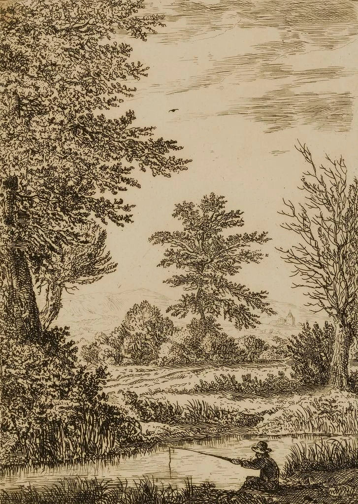 The art print of Landscape with Stream, created by Wilhelm von Bemmel, evokes bucolic serenity through its shades of green and blue. This canvas depicts a peaceful scene where a stream gently meanders, surrounded by majestic trees and gentle hills. Natural light plays a crucial role, illuminating the painting and creating shimmering reflections on the water. The calming atmosphere emanating from this work invites daydreaming and escape, making this art print a true tribute to the beauty of nature.