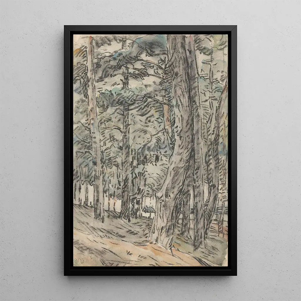 The art print "Bo wooded landscape" by Wilhelmus Johannes Steenhoff transports us into a lush universe, where light filters through dense foliage. The shades of green, mixed with touches of brown and blue, create a peaceful and serene atmosphere. Steenhoff's technique, characterized by delicate brushstrokes, brings each tree and shadow to life, inviting the viewer to immerse themselves in this enchanting landscape. The meticulous details of the leaves and trunks testify to attentive observation of nature, making this art print both realistic and poetic.