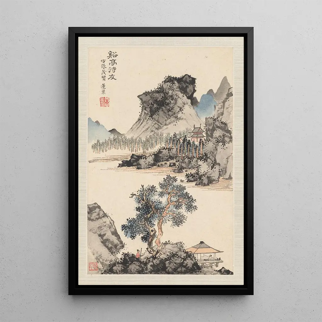Ce tableau, art print des paysages d'après les anciens maîtres, évoque une sérénité profonde grâce à ses teintes douces et ses compositions équilibrées. Les nuances de vert et de bleu se mêlent harmonieusement, créant une atmosphère apaisante qui invite à l'évasion. La technique de peinture délicate, inspirée des maîtres chinois, permet de capturer la beauté des paysages naturels avec une précision remarquable. Chaque détail, des montagnes majestueuses aux rivières sinueuses, est soigneusement élaboré, offrant un aperçu d'un monde où la nature règne en maître. Cette œuvre transporte le spectateur dans un voyage contemplatif, révélant la magie des paysages traditionnels.
