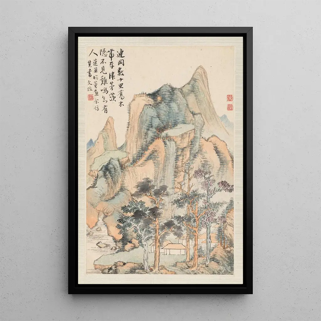 Pan Gongshou, figure marquante de la peinture paysagère chinoise, a su s'imposer grâce à son style distinctif et à sa maîtrise technique. Évoluant durant la dynastie Ming, il a été influencé par les grands maîtres de son temps tout en développant une approche personnelle de l'art. Sa capacité à capturer l'essence des paysages à travers des compositions équilibrées et des palettes de couleurs harmonieuses a fait de lui un artiste respecté et admiré. Ses œuvres, empreintes de poésie et de philosophie, continuent d'inspirer les générations actuelles, témoignant de l'importance de son héritage dans l'histoire de l'art chinois.