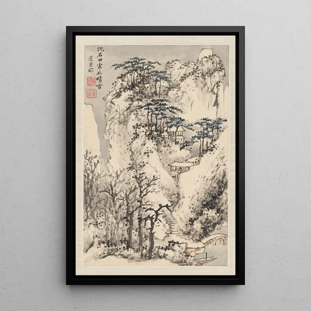 La reproduction "Paysages d'après les anciens maîtres art print Pl8" nous transporte dans un monde où la nature est célébrée avec une grande finesse. Les teintes douces et les détails minutieux des arbres et des montagnes créent une atmosphère de tranquillité. La technique de peinture à l'encre, caractéristique de l'art traditionnel chinois, confère à cette toile une profondeur et une texture qui captivent le regard. Chaque coup de pinceau semble raconter une histoire, invitant le spectateur à explorer les mystères de ce paysage enchanteur.