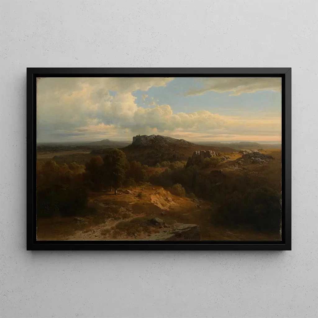 Le Regenstein in the Harz: a window into an enchanting world The Regenstein in the Harz, a captivating art print by Theodor Kotsch, transports us to a fairy-tale landscape where wild nature blends with medieval architecture. The rich and vibrant colors of this work evoke a mystical atmosphere, where every detail is carefully rendered. Kotsch, with his oil painting technique, manages to capture the light in a way that brings the scene to life. The shades of green in the trees contrast with the gray stones of the castle, creating a visual balance that draws the eye. This art print is a true invitation to explore the wonders of nature and history. Theodor Kotsch: an artist at the heart of German Romanticism Theodor Kotsch, born in 1824, was a German painter whose work is part of the Romantic movement. Influenced by the picturesque landscapes of Germany, he developed a unique style that combines realism and idealism. Kotsch often depicted scenes of nature, highlighting the beauty of German landscapes while incorporating historical elements. His work is marked by a deep admiration for the past and a desire to celebrate the grandeur of nature. As an artist, he contributed to shaping the artistic identity of his time, leaving a lasting legacy. A decorative acquisition with multiple assets Choosing an art print of Le Regenstein in the Harz is to enrich your living space with a piece that evokes both history and natural beauty. Whether in a living room, dining room, or office, this art print will bring a warm and welcoming atmosphere. Its printing quality ensures perfect fidelity to the details and colors of the original work, allowing you to fully appreciate its charm. By incorporating this art print into your decor, you create an inspiring environment where every glance immerses you in an enchanting world, conducive to dreaming and escapism.