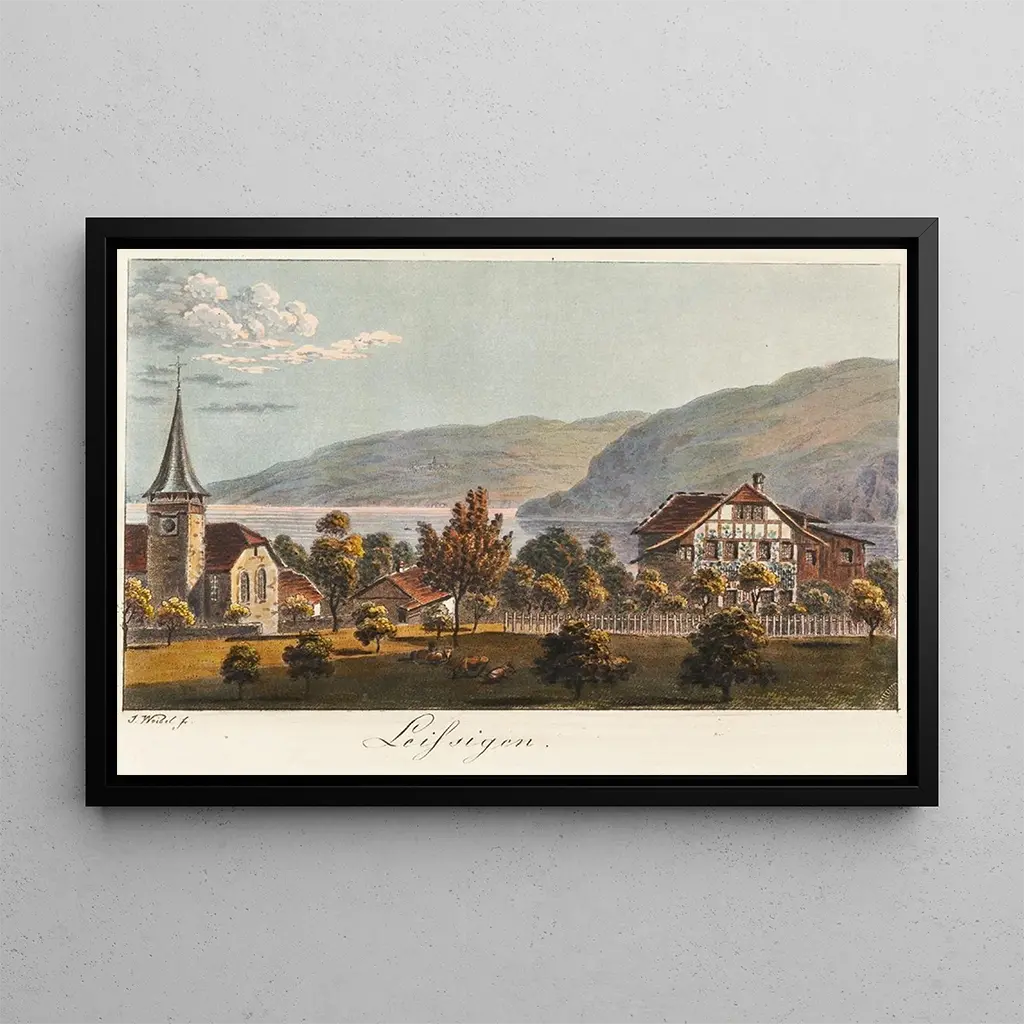 Leissigen: a reflection of Alpine serenity The Leissigen painting by Jakob Samuel Weibel is a work that invites contemplation. With its soft hues and shades of green, it captures the tranquil beauty of an Alpine landscape. The artist's technique, blending watercolor and oil, creates a soothing atmosphere, where light plays on the water surfaces and mountain peaks. Each brushstroke seems to whisper the secrets of nature, transporting the viewer to a world of peace and harmony. This art print not only evokes the splendor of the Swiss Alps but also a sense of nostalgia for simple and serene moments. Jakob Samuel Weibel: a master of romantic landscape art Jakob Samuel Weibel, active in the 19th century, is a Swiss artist renowned for his evocative landscapes. Influenced by Romanticism, he specialized in depicting nature, seeking to capture the essence of the places he painted. His career was marked by a quest for natural beauty, often in harmony with human emotions. Weibel's works, including Leissigen, demonstrate his skill in translating light and atmosphere, while reflecting the ideals of his time. His legacy endures, inspiring art lovers to rediscover the magic of Alpine landscapes. A decorative piece with multiple virtues The art print of the Leissigen painting is a decorative item that fits perfectly into various spaces, whether a living room, office, or bedroom. Its reproduction quality guarantees remarkable fidelity to the original work, allowing you to enjoy the beauty of this Alpine landscape daily. With its aesthetic appeal, this canvas brings a touch of serenity and elegance to your interior. By choosing this piece, you opt for a decorative element that evokes nature and tranquility, while enriching your living environment.