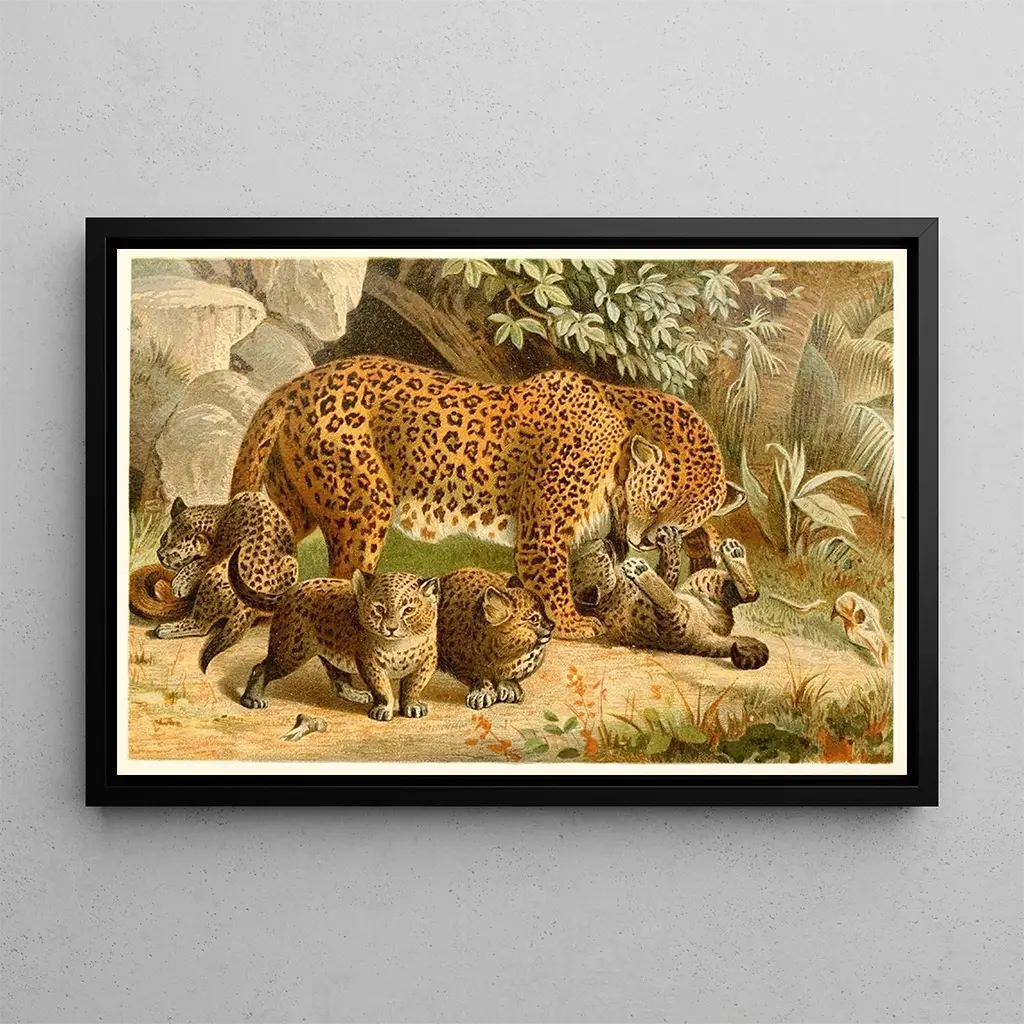 Animal art, of which "Leopards" is a perfect example, has always held an important place in art history. Although the artist of this work remains anonymous, their work demonstrates a deep understanding of animal behaviors and habitats. This period, marked by a growing interest in wildlife and flora, saw many artists emerge, seeking to immortalize the beauty of nature. "Leopards" fits into this tradition, offering a valuable insight into the interaction between humans and the animal world.