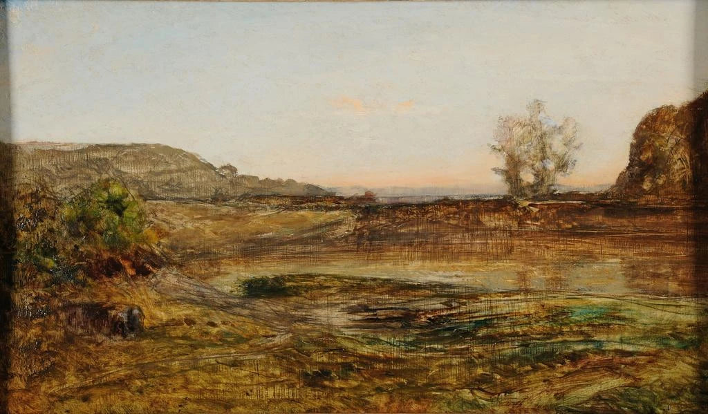 François-Auguste Ravier, active in the 19th century, is a French painter renowned for his poetic landscapes. Influenced by the Romantic movement, he draws inspiration from the landscapes of the Rhône-Alpes region, particularly Isère. His career spans several decades, during which he develops a unique style combining realism and lyricism. Ravier is often associated with the Barbizon School, a group of artists who sought to depict nature authentically. His artwork "Étang d'Optevoz" demonstrates his skill in capturing the essence of the places he loves, while offering a reflection on the relationship between man and nature.