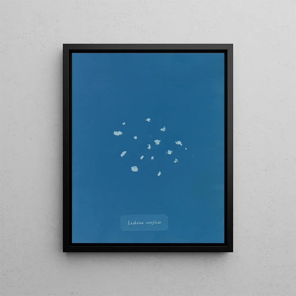 In the fascinating world of photography and botanical art, "Lichen Border - Anna Atkins" stands out for its innovative and poetic approach. This iconic work, created by one of the first female photographers, embodies the harmony between nature and art. Anna Atkins, a pioneer of cyanotype, captured the ephemeral beauty of lichens, these fascinating organisms that testify to the richness of biodiversity. The art print of this piece invites viewers to immerse themselves in a delicate universe, where light and shadow dance on paper, revealing textures and shapes of rare elegance. Style and uniqueness of the work The uniqueness of "Lichen Border" lies in its bold use of cyanotype, a photographic technique that produces deep, vibrant blue impressions. Anna Atkins expertly exploited this method to create delicate compositions, where every detail is carefully highlighted. Lichens, often perceived as trivial elements of nature, here take on an almost sculptural dimension. The contrast between shades of blue and the whiteness of the paper creates a distinctive aesthetic, where the simplicity of forms reveals an unsuspected complexity. This work transcends the boundaries of botany and art, offering a reflection on the relationship between humans and nature, while celebrating the intrinsic beauty of natural elements. The artist and her influence Anna Atkins, born in 1799, is often recognized as the first woman to publish an illustrated book of photographs. Her work not only marked the history of photography but also paved the way for a new way of perceiving science and art. By focusing on lichens and photographing them, she combined her love for botany with an artistic approach, creating works that continue to inspire future generations. Her influence is felt in contemporary artistic movements, where nature is often celebrated through innovative practices. Anna Atkins demonstrated that art can be a powerful means of raising awareness about the fragile beauty of our environment, a message still relevant in today's context of growing environmental concerns.