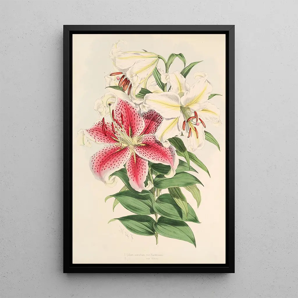The art print of Lilium auratum var Parkmanm is an ideal choice to enhance various living spaces, whether in a living room, office, or bedroom. Its printing quality guarantees faithful reproduction of the colors and details of the original work, adding a touch of elegance and sophistication to your interior decor. This artwork, with its undeniable aesthetic appeal, can serve as a focal point in a room or as a complementary element to other art prints. By integrating this canvas into your decor, you invite the beauty of nature into your home while celebrating the artistic legacy of Walter Hood Fitch.
