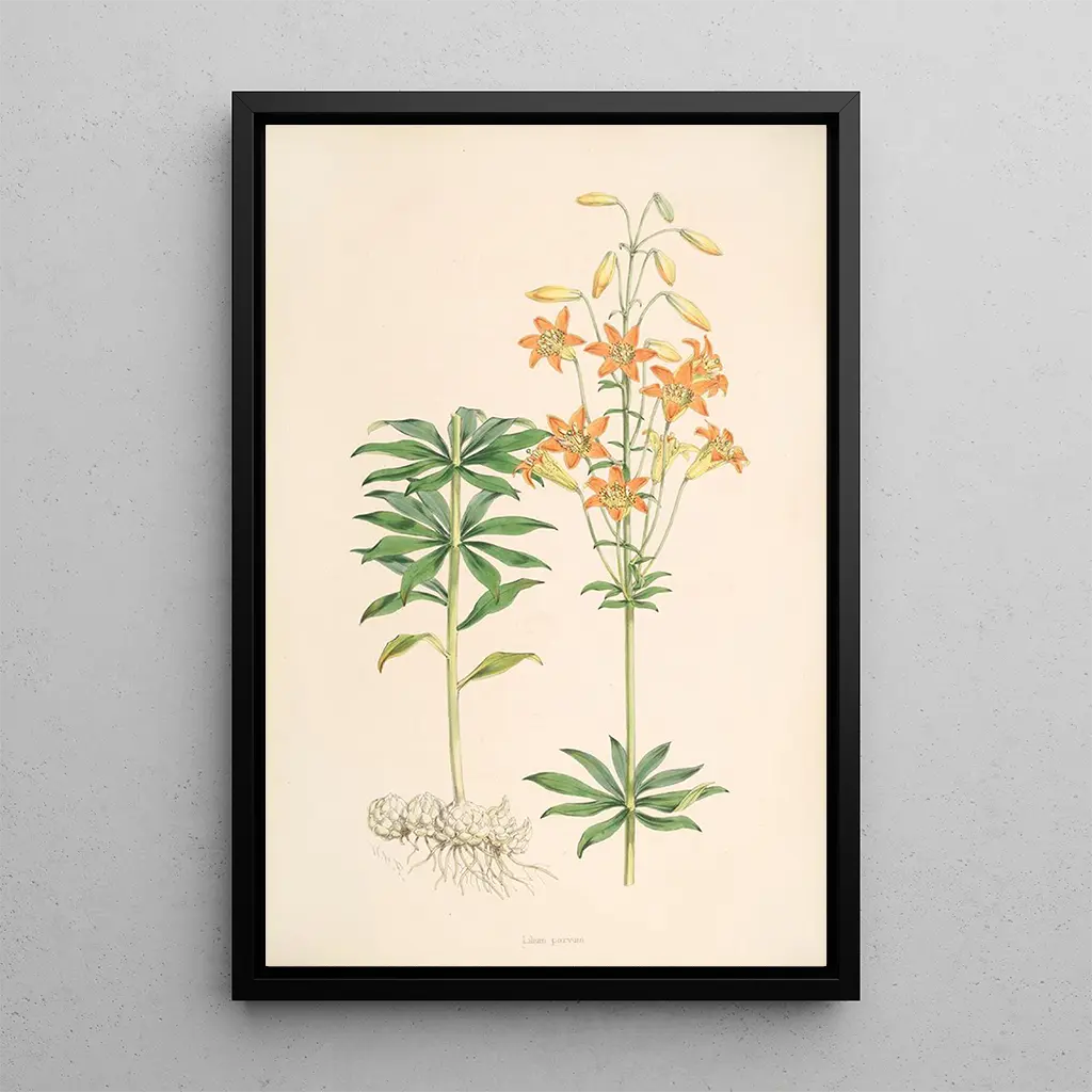 The art print of Lilium parvum is an ideal decorative piece to enhance your interior, whether in a living room, office, or bedroom. Its print quality guarantees faithful reproduction of the colors and details of the original artwork, allowing you to enjoy the full beauty of this botanical illustration. With its undeniable aesthetic appeal, this canvas adds a touch of nature and elegance to your decor, while also impressing visitors. Treat yourself to this art print and let yourself be transported by the magic of flowers.