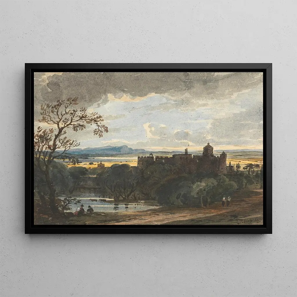 John Varley, actif au début du XIXe siècle, est souvent considéré comme l’un des pionniers du paysage romantique en Grande-Bretagne. Influencé par les œuvres de Turner et de Constable, il a su développer un style unique, alliant précision et émotion. Varley a également été un enseignant influent, partageant sa passion pour la peinture avec de nombreux artistes de son époque. Son intérêt pour la nature et l'architecture se reflète dans ses œuvres, qui capturent l'essence des lieux qu'il a visités. Le "Palais de Linlithgow" témoigne de son talent à immortaliser des sites historiques tout en les intégrant dans des paysages enchanteurs.