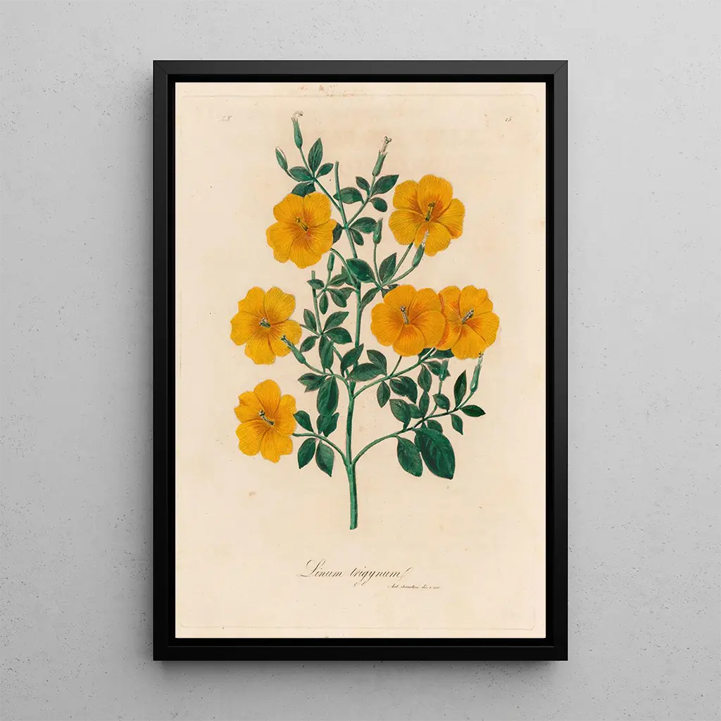 Linum trigynum: a floral delicacy to discover "Linum trigynum" by Gaetano Savi is an art print that reveals the finesse and beauty of flax flowers. The delicate shades of blue and white blend gracefully, creating a harmonious composition that evokes the lightness of spring. The artist's technique, combining scientific precision and artistic sensitivity, pays tribute to this plant while capturing its essence. The atmosphere of this art print is soft and soothing, inviting the viewer to appreciate the ephemeral beauty of nature. Gaetano Savi: an artist dedicated to botany Gaetano Savi, active in the 18th century, is renowned for his contributions to botanical illustration. His work is set in a context where science and art converge, allowing for a better understanding of plants. Influenced by the discoveries of his time, Savi was able to combine scientific rigor and aesthetics in his works. "Linum trigynum" is a perfect example of his talent, illustrating not only the beauty of the flower but also its importance in botanical study. A decorative acquisition with multiple assets The art print of "Linum trigynum" is an ideal choice to bring a touch of nature to your interior decoration. Whether in a living room, office, or bedroom, this print will appeal through its print quality and fidelity to the original colors. Its aesthetic appeal makes it a decorative element that easily fits into various interior styles. By choosing this art print, you opt for a decoration that celebrates the beauty of flowers while adding a note of serenity to your living space.