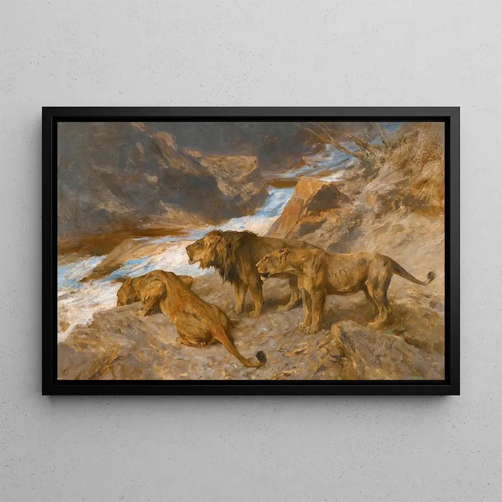 Lions près d'un ruisseau : une scène de sérénité sauvage Dans cette art print captivante, Arthur Wardle nous plonge au cœur d'une nature luxuriante où deux lions majestueux se reposent près d'un ruisseau scintillant. Les teintes dorées de leur pelage contrastent harmonieusement avec les verts profonds de la végétation environnante. La technique de l'artiste, alliant réalisme et impressionnisme, crée une atmosphère apaisante, presque méditative. Les jeux de lumière sur l'eau et les ombres des arbres ajoutent une dimension vivante à cette scène, invitant le spectateur à s'imaginer dans ce refuge sauvage, loin du tumulte urbain. Arthur Wardle : un maître de la faune sauvage Arthur Wardle, peintre britannique du début du XXe siècle, est reconnu pour ses œuvres mettant en avant la faune et la flore. Influencé par le mouvement préraphaélite, il s'est spécialisé dans la représentation réaliste des animaux, notamment des félins. Sa carrière, marquée par une attention minutieuse aux détails et une palette riche, lui a permis de se faire un nom dans le monde de l'art animalier. Les œuvres de Wardle, souvent inspirées par la nature sauvage, témoignent d'une époque où l'intérêt pour la conservation de la faune commençait à émerger, rendant son travail d'autant plus pertinent. Une acquisition décorative aux multiples atouts Opter pour une art print de "Lions près d'un ruisseau" est un choix judicieux pour embellir votre intérieur. Que ce soit dans un salon, un bureau ou une chambre, cette toile apporte une touche d'élégance et de sérénité. Sa qualité d'impression garantit une fidélité remarquable aux couleurs et aux détails de l'œuvre originale, tout en offrant un attrait esthétique indéniable. En intégrant cette art print dans votre décoration, vous créez un espace inspirant qui évoque la beauté sauvage et la majesté de la nature, tout en suscitant l'admiration de vos invités.
