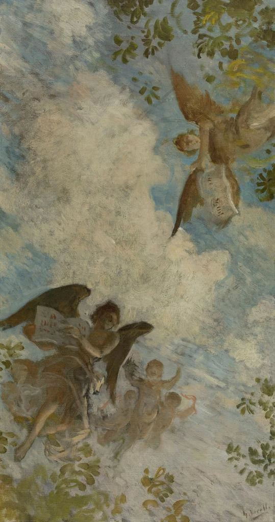 Henry Lerolle, peintre français du XIXe siècle, a su s'imposer grâce à son style unique qui mêle tradition académique et touches impressionnistes. Formé à l'École des Beaux-Arts, il a été influencé par des maîtres tels que Delacroix et Courbet, ce qui se reflète dans ses choix de sujets et sa technique. "Génie des lettres" s'inscrit dans une période où la culture littéraire et artistique était en plein essor, et Lerolle, par ses œuvres, a contribué à la valorisation de l'intellect et de la créativité. Son engagement envers l'art et son exploration des thèmes intellectuels lui ont permis de laisser une empreinte durable dans le paysage artistique français.