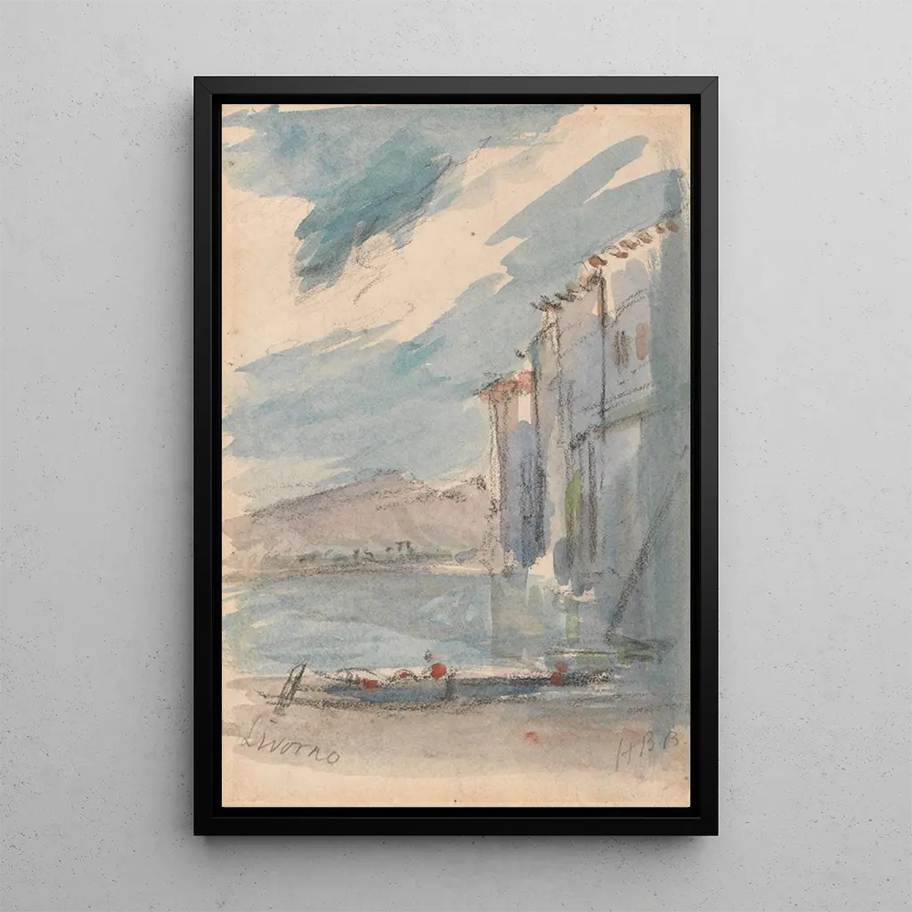 The art print of Livourne, created by Hercules Brabazon Brabazon, immerses us in the lively bustle of an animated Italian port. The white sails of the boats contrast with the deep blue of the sea, while the colorful buildings line the shoreline, creating a lively and dynamic scene. Brabazon's technique, blending watercolor and oil, captures the light and movement, bringing this maritime scene to life. The atmosphere emanating from this work is both joyful and nostalgic, inviting the viewer to feel the energy of this iconic place.