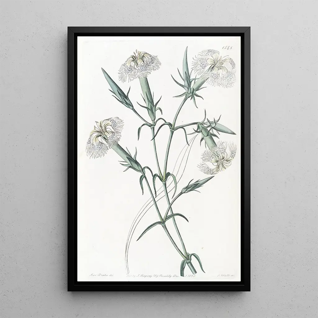 The Libyan carnation, an iconic artwork by Sydenham Edwards, stands out for its vibrant palette and intricate details. This art print captures the very essence of nature, where each petal seems to shimmer under the light. The shades of pink and green intertwine harmoniously, creating an atmosphere that is both soothing and invigorating. The watercolor technique, masterfully employed, gives this canvas a lightness and fluidity that invite contemplation. Observing this piece, one can almost feel the delicate scent of the flower, as if it were within reach.