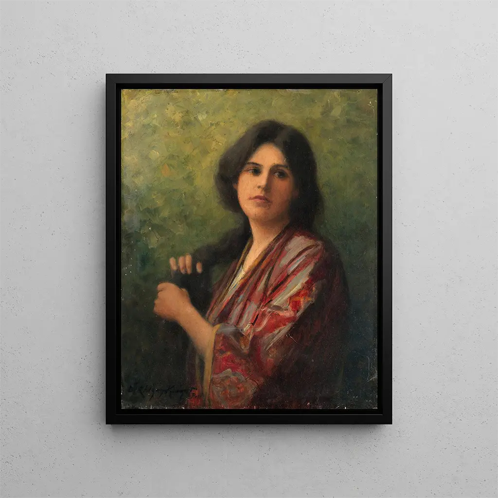 Daniel Ridgway Knight's style is characterized by an impressive mastery of light and color. In "Lost in Thought," delicate shades of green and brown create a soothing atmosphere, while the soft light bathing the scene highlights the meticulous details of the face and clothing of the character. This attention to natural elements, as well as the subtle expression of emotions, gives the piece an almost tangible dimension. Knight, a true poet of painting, succeeds in capturing a moment of vulnerability, where the character appears suspended between dream and reality. The composition, balanced and harmonious, guides the viewer's gaze across the painting, inviting each to ponder the thoughts crossing the mind of the depicted individual. Thus, this work stands out for its ability to evoke a contemplative atmosphere, while remaining rooted in tangible reality.