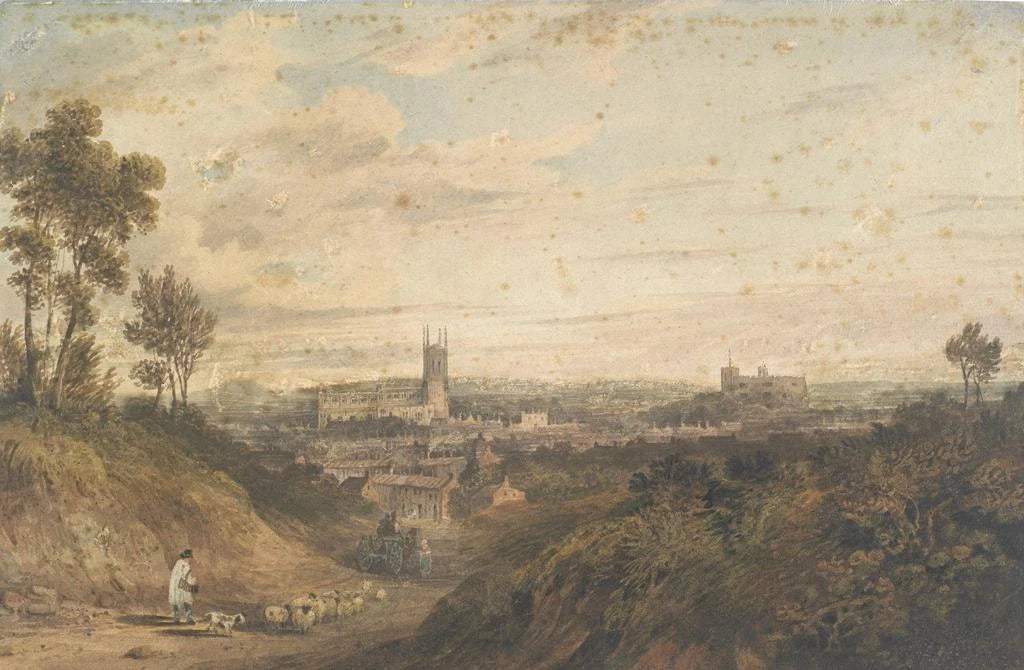 Paul Sandby Munn, born in 1763, is recognized as one of the masters of watercolor art in England. His work often focuses on landscapes and architectural scenes, highlighting the beauty of historic sites. Munn was influenced by the great masters of his time, but he developed a distinctive style that combines precision and sensitivity. The Ludlow Church, created during a period when interest in architectural heritage was growing, demonstrates his skill in capturing the essence of places. His work helped popularize the art print as a full-fledged artistic expression.