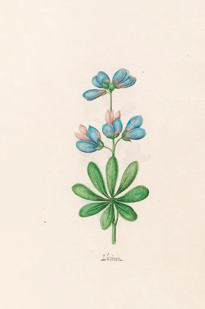 Magdalena Rosina Funck, active during the 19th century, is an iconic figure in floral painting. Her work is part of a period when naturalist art was gaining prominence, and she distinguished herself by her ability to capture the beauty of flowers with great meticulousness. Influenced by the artistic currents of her time, Funck combined scientific observation with artistic sensitivity, creating works that speak to the soul. Her lupins, in particular, demonstrate her talent for immortalizing the fleeting beauty of nature while offering a reflection on the cycle of life.