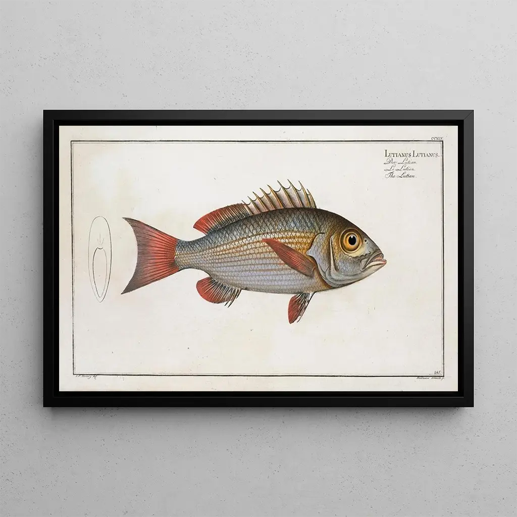 The reproduction of the painting Lutjanus lutjanus is an ideal decorative piece for various spaces, whether a living room, office, or bedroom. Its printing quality guarantees remarkable fidelity to the original details, allowing appreciation of every nuance and texture. This art print adds a touch of elegance and serenity to your interior, while evoking the beauty of marine life. Its aesthetic appeal makes it an excellent choice for nature and art enthusiasts, adding a captivating visual dimension to your decor. Treat yourself to this canvas and let yourself be enchanted by the aquatic universe it depicts.