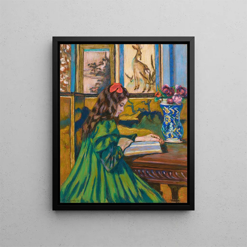 In the fascinating world of Impressionist art, the artwork "Madeleine Guillaumin reading" by Armand Guillaumin stands out for its delicacy and intimacy. This painting, which captures a moment of serenity and concentration, immerses us in the daily life of the artist and his model, Madeleine Guillaumin, a woman of letters and muse. Through this piece, Armand Guillaumin invites us to share a suspended moment, where the outside world seems to fade away in favor of reading. The soft light emanating from the canvas and the peaceful posture of the reader transport us into a universe imbued with poetry, where every detail tells a story.