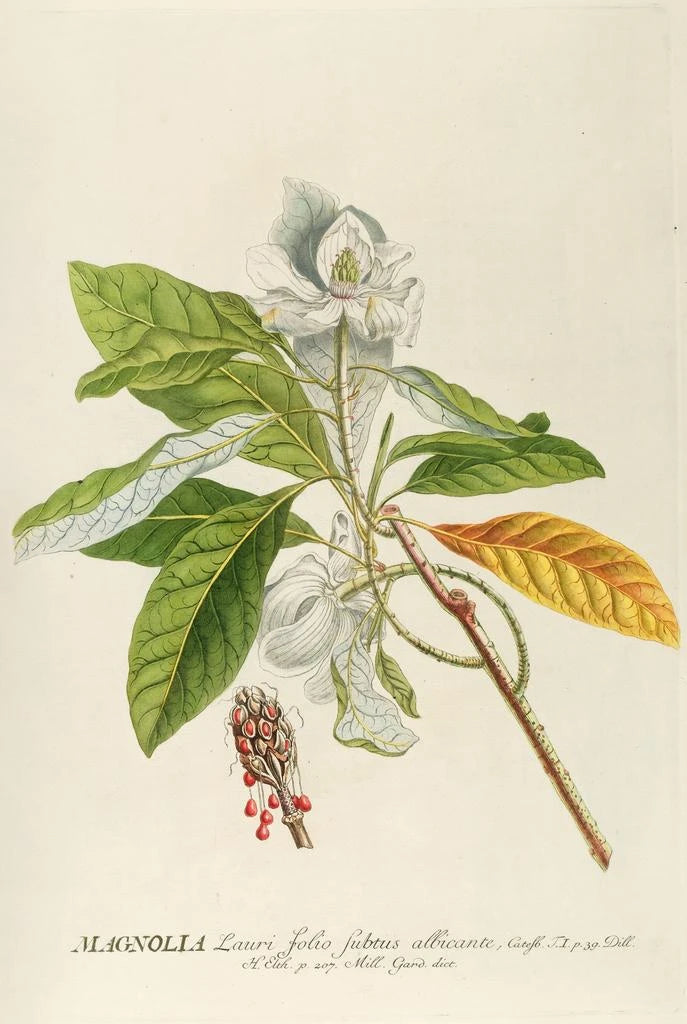 Georg Dionysius Ehret, active in the 18th century, is considered one of the pioneers of botanical illustration. His work, marked by a baroque style, combines scientific precision and artistic sensitivity. Ehret was influenced by the botanical discoveries of his time and collaborated with many botanists, contributing to the documentation of plant species. His ability to capture the beauty of plants has made him an iconic figure in the worlds of art and science, and his works, including Magnolia, continue to inspire art and nature enthusiasts.