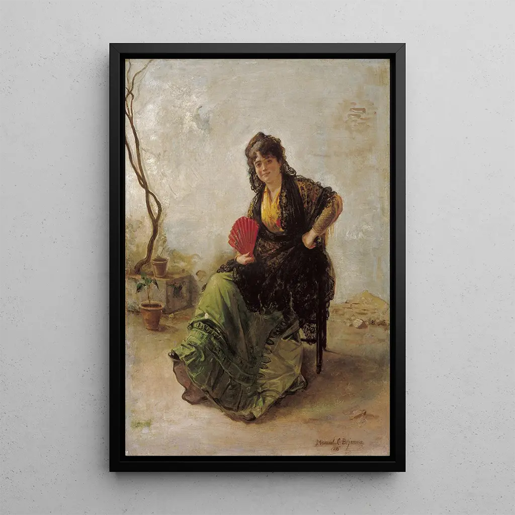 The art print of "Maja with Red Fan" reveals a woman with striking beauty, draped in fabric that accentuates her curves. Manuel Cabral Aguado Bejarano uses rich colors and bold contrasts to bring this captivating portrait to life. The red fan, an iconic accessory, draws the eye and adds a layer of mystery and seduction to the piece. The atmosphere is both intimate and daring, inviting the viewer to immerse themselves in the fascinating world of the Maja, an emblematic figure of Spanish culture.