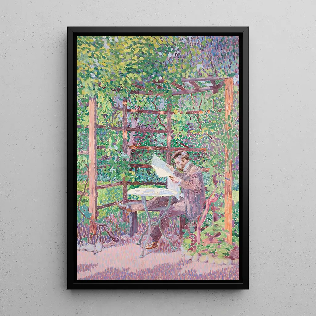 Painting of a man reading in a pergola - Rudolf Junk | Art print
