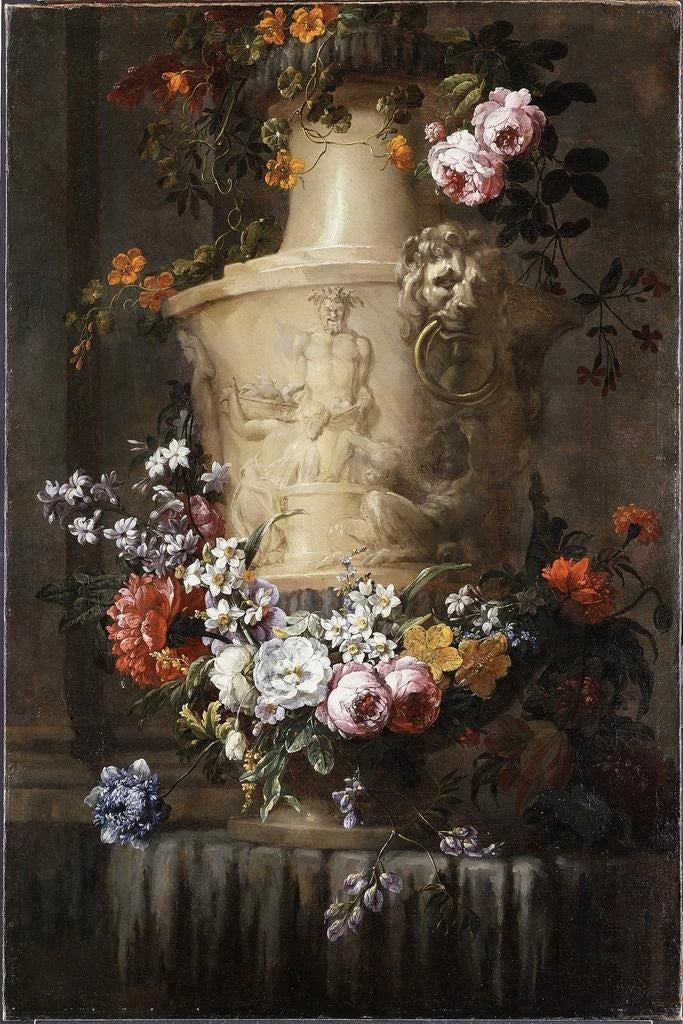 Art print Marble vase with flower garland - Jean-Baptiste Monnoyer | Art print