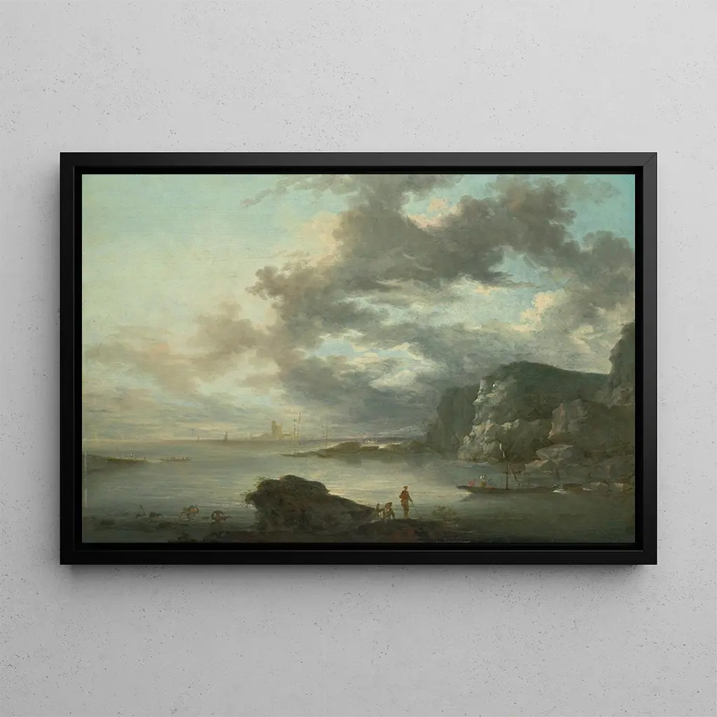 The "Seascape" art print by Louis Gabriel Moreau evokes a serene and calming atmosphere, where the sea and sky blend into a ballet of shades. The waves, delicately rendered, seem to dance under the sunlight, while the clouds, painted with remarkable finesse, add a poetic dimension to the scene. The color palette, dominated by deep blues and bright whites, creates a visual harmony that invites contemplation. The artist's technique, blending precision and impressionism, gives this work emotional depth, transporting the viewer to distant horizons.