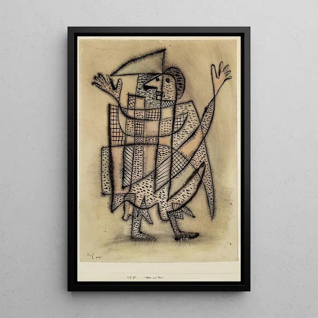 Masque avec Faux : a fusion between dream and reality In the canvas "Masque avec Faux", Paul Klee immerses us in a dreamlike universe where shapes and colors intertwine with poetic lightness. The warm and vibrant hues, ranging from ochres to deep reds, create an atmosphere that is both mysterious and captivating. Klee's technique, which combines watercolor and drawing, brings to life a mask that seems both frozen in time and in motion, as if it were a reflection of an inner thought. Each stroke is an invitation to explore the depths of imagination, where the mask becomes a symbol of identity and personal expression. Paul Klee: a pioneer of abstract expressionism Paul Klee, Swiss artist of the early 20th century, is recognized for his innovative approach to painting. Influenced by cubism, surrealism, and music, Klee developed a unique style that transcends traditional boundaries of art. His period at the Bauhaus school was decisive, allowing him to explore concepts of color and form that have marked the history of modern art. "Masque avec Faux" reflects his interest in symbolism and the expression of emotions, making him an essential figure of the expressionist movement. A decorative acquisition with multiple assets The art print of "Masque avec Faux" by Paul Klee is a decorative piece that will enrich your interior, whether in a living room, office, or bedroom. Its print quality and fidelity to the original colors make it an ideal choice for art enthusiasts. This painting, with its intriguing motifs and bold palette, attracts the eye and sparks curiosity. By integrating this canvas into your decor, you bring a touch of originality and sophistication, while celebrating the artistic legacy of a 20th-century master.
