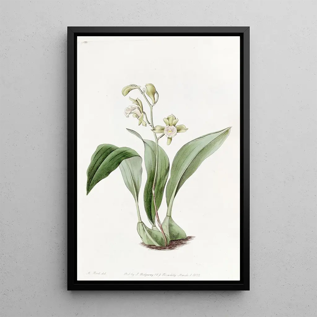 Maxillaria with Clustered Flowers: An Enchanting Floral Dance The art print of the Maxillaria with clustered flowers features a delicate composition, where vibrant colors blend harmoniously. Shades of yellow and violet intertwine, creating a captivating visual effect. The watercolor technique, used by Sydenham Edwards, captures the lightness of the petals and the softness of the forms. The atmosphere conveyed by this artwork is both soothing and inspiring, inviting the viewer to immerse themselves in a rich floral universe full of details. Each flower seems to tell a story, an invitation to contemplate the beauty of nature. Sydenham Edwards: a pioneer of botanical illustration Sydenham Edwards, active in the early 19th century, is renowned for his contributions to botanical illustration. Influenced by the Romantic movement, he skillfully captured the diversity and beauty of plants with remarkable precision. His works, often published in botanical books, demonstrate his commitment to science and art. The Maxillaria with clustered flowers fits into a period when scientific illustration was gaining prominence, allowing a broad audience to appreciate the richness of the plant world. Edwards thus left a lasting legacy, combining aesthetics and knowledge. A decorative acquisition with multiple advantages The art print of the Maxillaria with clustered flowers is an ideal choice to enhance your interior, whether in a living room, office, or bedroom. Its printing quality guarantees faithful reproduction of the colors and details of the original artwork, adding a touch of elegance to your decor. This piece, with its undeniable aesthetic appeal, will attract botanical enthusiasts and art lovers alike. By integrating this canvas into your space, you create a warm and refined atmosphere, while celebrating the beauty of nature through art.