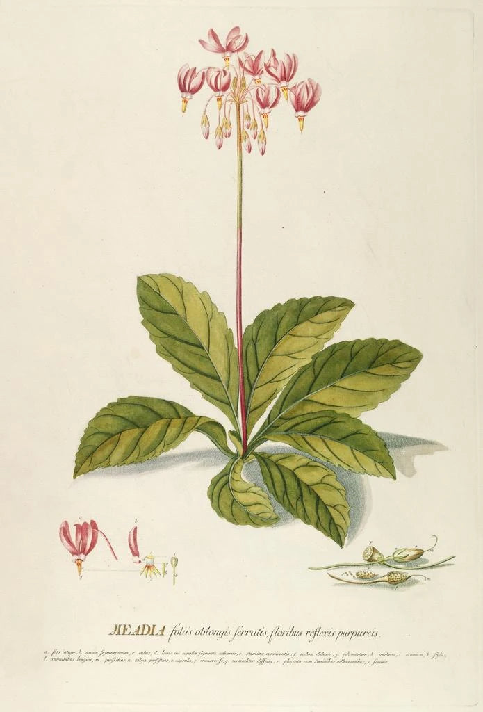 Georg Dionysius Ehret, active in the 18th century, is recognized as one of the greatest botanical illustrators of his time. Trained in Germany, he was influenced by the scientific and artistic currents of his era, notably the systematic botany movement. His works, such as Meadia, are the result of meticulous observation and a passion for nature. Ehret collaborated with renowned botanists, contributing to the dissemination of knowledge about flora. His unique style combines scientific rigor with artistic sensitivity, making him an emblematic figure of botanical illustration.