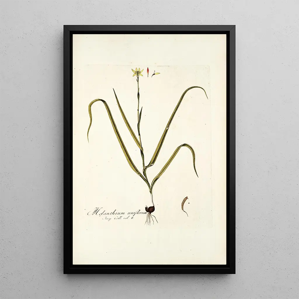 Melanthium uniflorum : the brilliance of a rare flower The art print of Melanthium uniflorum transports us to a secret garden where the beauty of flowers blooms. The delicate shades of yellow and green, skillfully highlighted by Nikolaus Joseph Freiherr von Jacquin, create a luminous and joyful atmosphere. The precision of the details, typical of watercolor technique, allows you to feel the delicacy of each petal and the freshness of the leaves. This piece is a true invitation to wonder, capturing the very essence of nature and its ability to inspire. Nikolaus Joseph Freiherr von Jacquin : art in the service of science Nikolaus Joseph Freiherr von Jacquin, an Austrian botanist and artist of the 18th century, marked his era with his contributions to science and art. His in-depth studies of plants, fueled by his travels, enabled him to create works that combine scientific rigor and aesthetic sensitivity. Jacquin was able to immortalize the beauty of plant species with unparalleled precision, making him a pioneer in the field of botanical illustration. His legacy endures today, inspiring many artists and scientists. A decorative acquisition with multiple assets The art print of Melanthium uniflorum fits perfectly into various living spaces, whether it’s a living room, an office, or a bedroom. Its print quality and respect for the original colors make it a top decorative choice. By adding this canvas to your interior, you bring a touch of nature and serenity, while enriching your decor with an art piece that combines beauty and knowledge. This painting will delight your guests and spark their curiosity about the floral world.