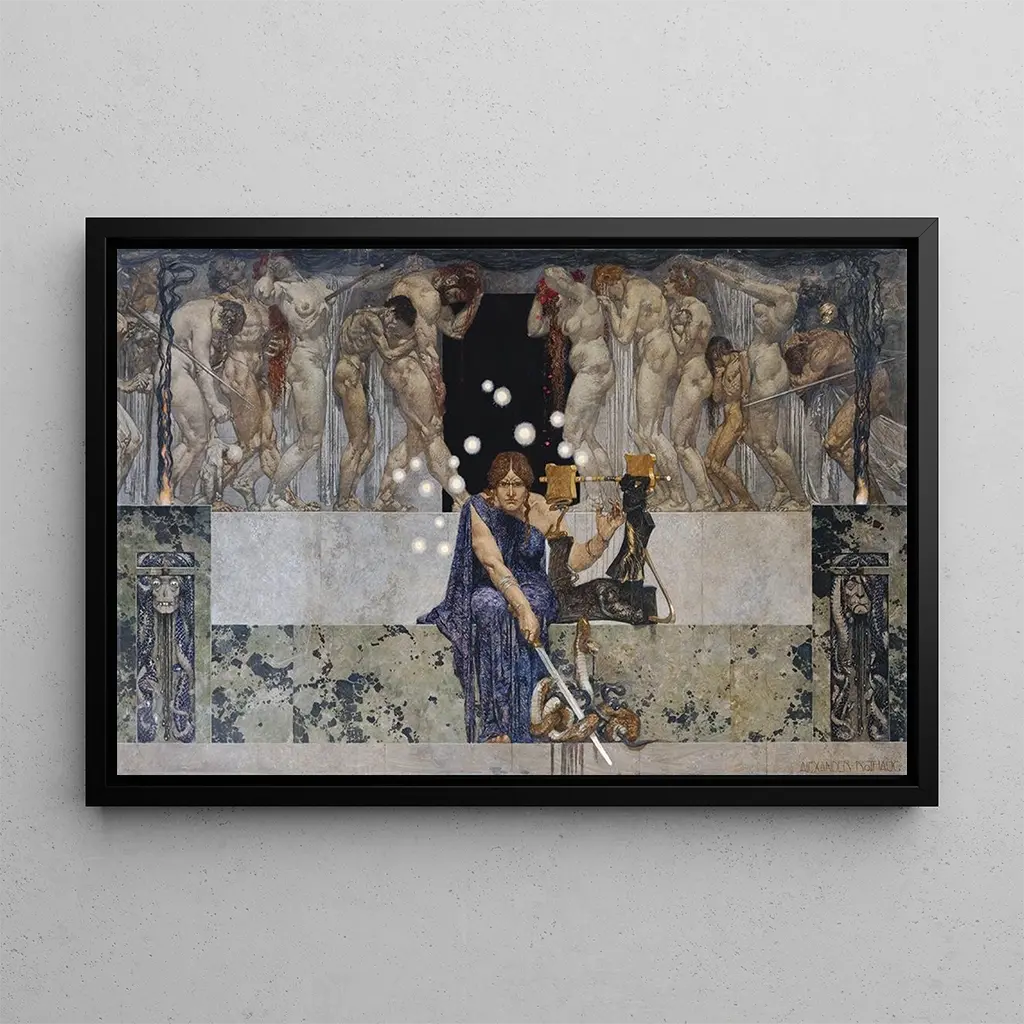 The art print Melpomène by Alexander Rothaug evokes the muse of tragedy, embodying the emotion and depth of dramatic arts. This canvas, rich in detail and expressiveness, uses dark colors and dramatic lighting to create an intense atmosphere. The delicate features of Melpomène's face, as well as the fluidity of her gown, demonstrate exceptional craftsmanship. Rothaug manages to capture the very essence of tragedy, inviting the viewer to feel the power of human emotions through his art. Every element of the composition contributes to a captivating visual narrative.