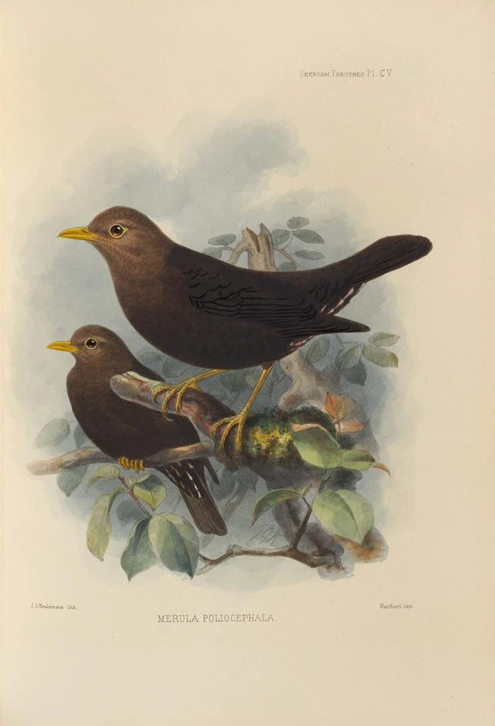 Painting Merula Poliocephala - Henry Seebohm | Art print