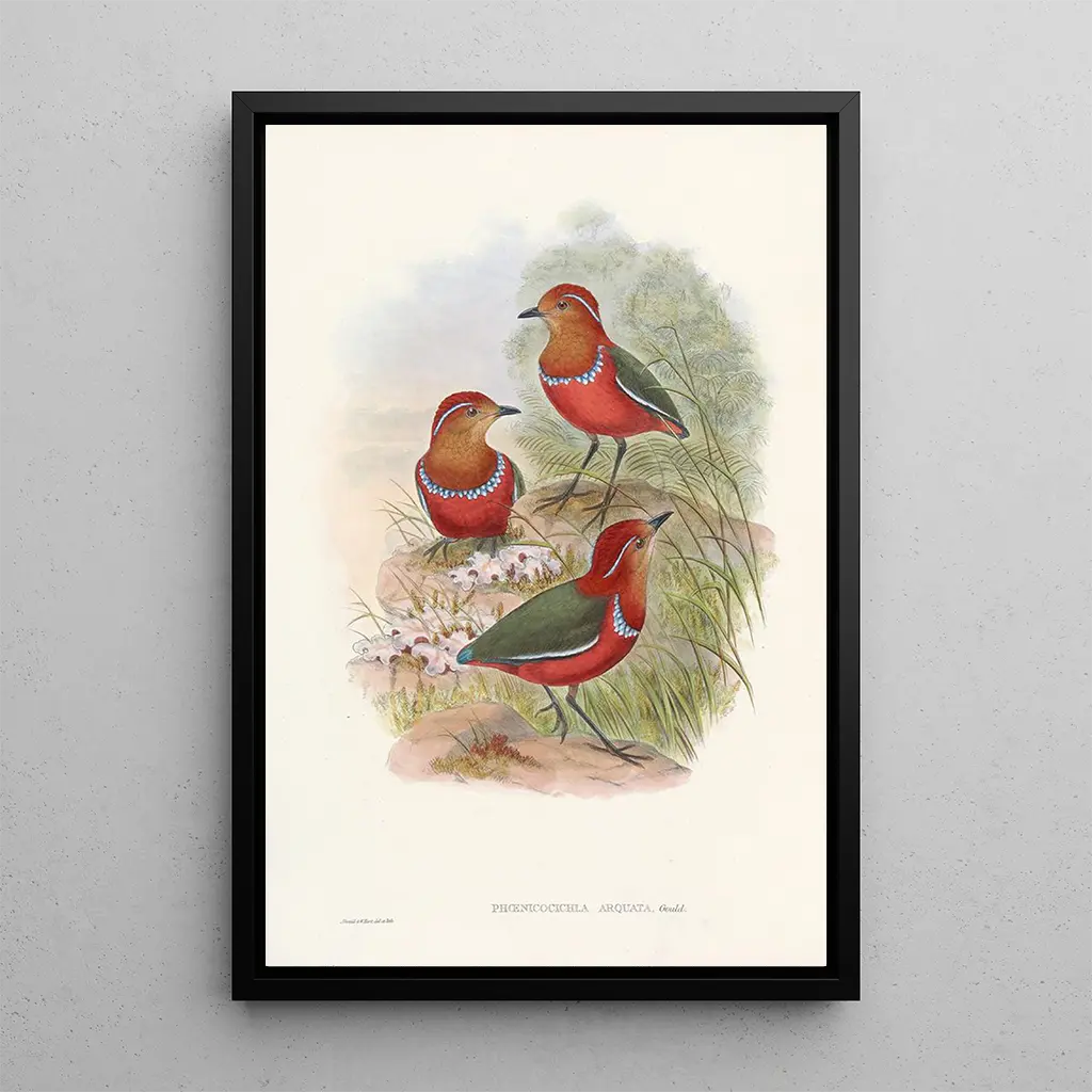 John Gould, a 19th-century British naturalist and ornithologist, is renowned for his significant contributions to the study of birds. His passion for ornithology led him to travel around the world, collecting specimens and creating detailed illustrations. Gould was influenced by the Romantic movement, which valued nature and beauty. His works, including the art print Monograph of the Pittidae, are not only artistic representations but also valuable scientific documents. The importance of his work lies in his ability to combine art and science, making him an emblematic figure of naturalist illustration.